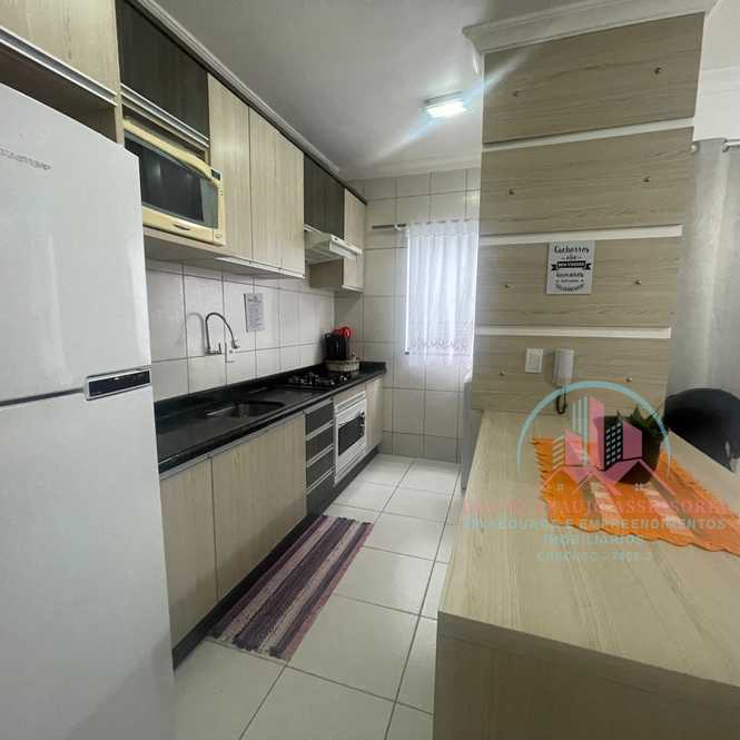 Apartamento com 2 dormitórios, sala, cozinha, banheiro e sacada com churrasqueira.